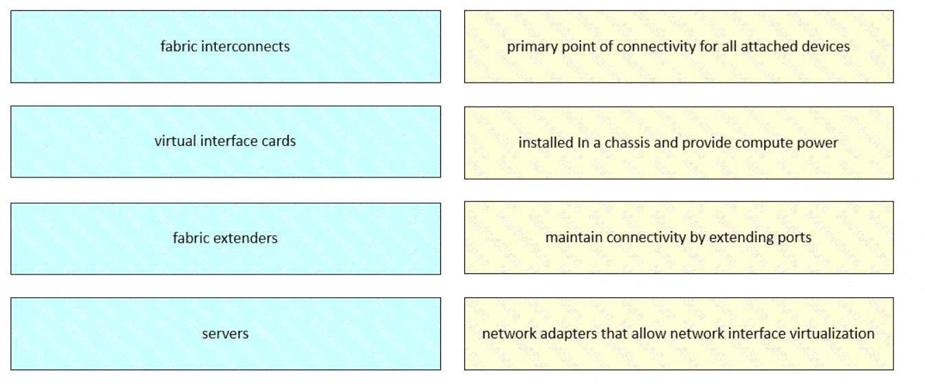 Drag and drop the Cisco UCS components from the left onto the corresponding functionalities on the right.