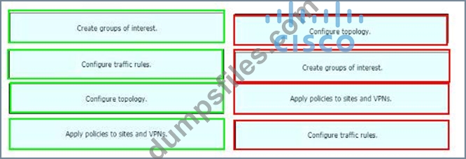 - Q30. Drag and drop the vManage policy configuration procedures from the left onto the correct d...