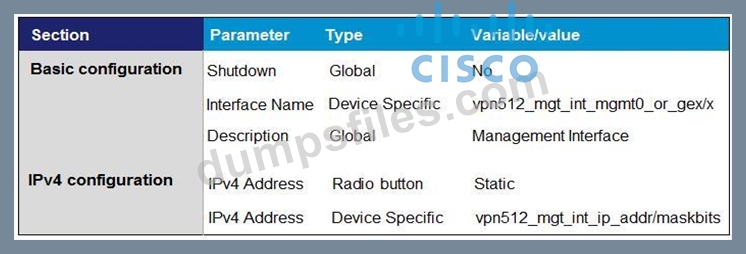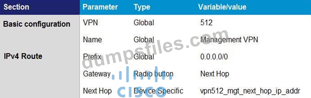 Q67. Which template configures the out-of-band management VPN? A) (Exhibit) B) (Exhibit) C) (Ex...