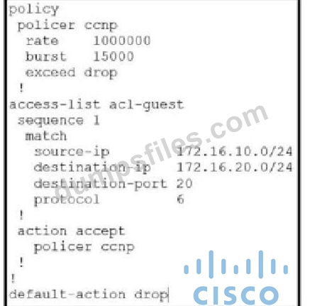 - Q95. (Exhibit) Refer to the exhibit. Which QoS treatment results from this configuration after ...