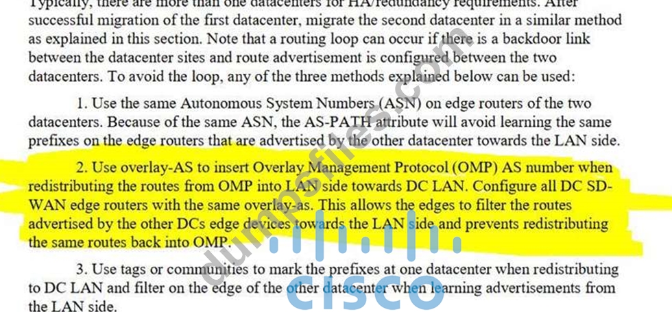 - Q75. Which OSPF command makes the WAN Edge router a less preferred exit from a site with a dual...