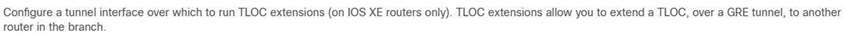 A network administrator is configuring a tunnel interface on a branch Cisco IOS XE router to run TLOC extensions. Which configuration will extend a TLOC over a GRE tunnel to another router in the branch?