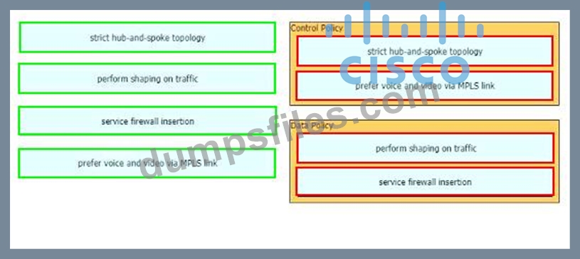 - Q37. Drag and drop the vManage policy configuration procedures from the left onto the correct d...