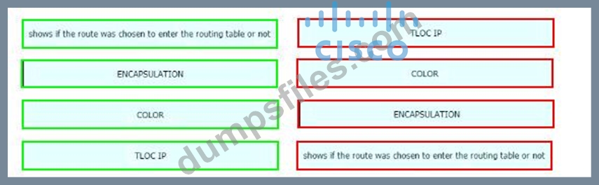 - Q148. Drag and drop the route verification output from show omp tlocs from the left onto the cor...