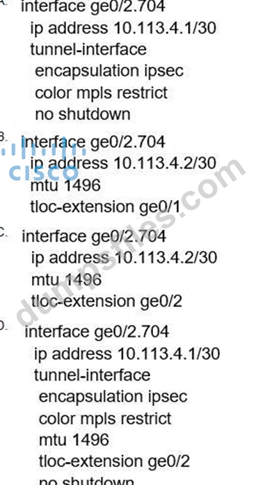 - Q164. Refer to the exhibit. (Exhibit) The tunnel interface configuration on both WAN Edge router...