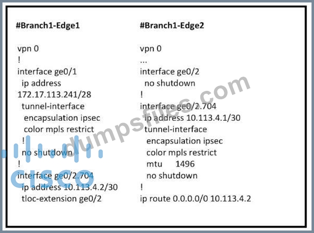 - Q104. Two sites have one WAN Edge each WAN Edge has two public TLOCs with no restrict configured...