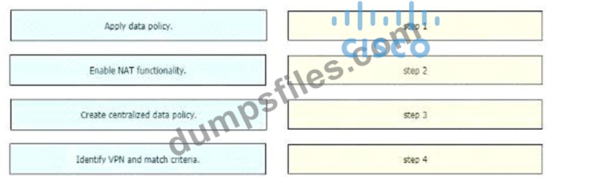 - Q17. Drag and drop the vManage policy configuration procedures from the left onto the correct d...
