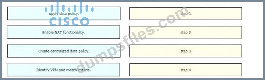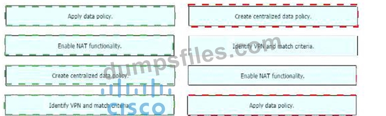 - Q17. Drag and drop the vManage policy configuration procedures from the left onto the correct d...