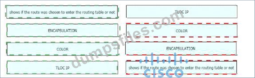 - Q63. Drag and drop the route verification output from show omp tlocs from the left onto the cor...