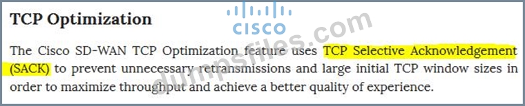 - Q42. Which TCP Optimization feature is used by WAN Edge to prevent unnecessary retransmissions ...