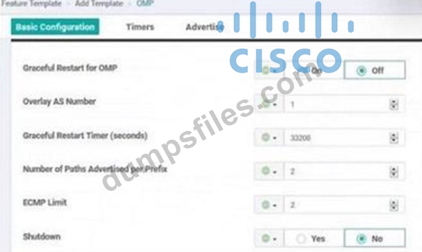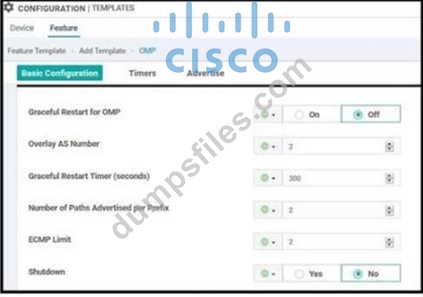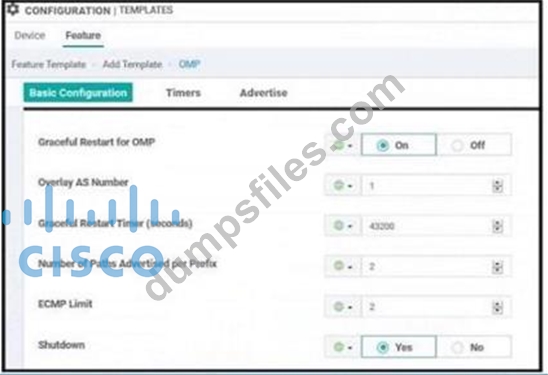 - Q10. A network administrator is creating an OMP feature template from the vManage GUI to be app...