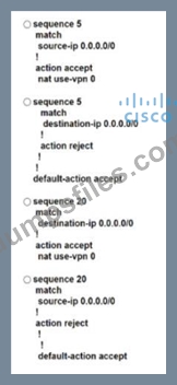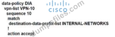 - Q295. An engineer creates this data policy for DIA for VPN 10: (Exhibit) Which policy sequence e...