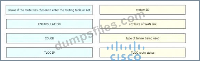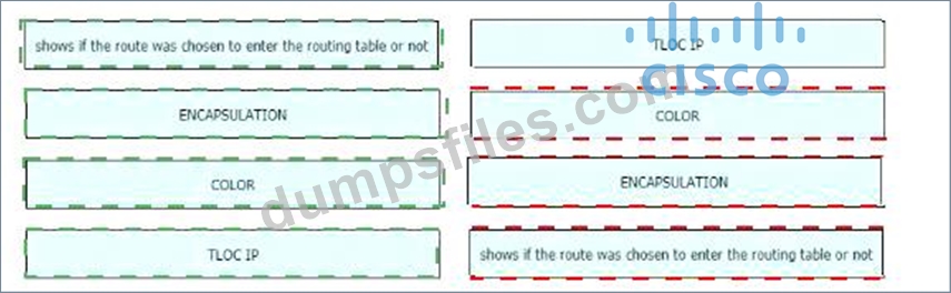 - Q223. Drag and drop the route verification output from show omp tlocs from the left onto the cor...