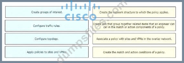 - Q270. Drag and drop the vManage policy configuration procedures from the left onto the correct d...