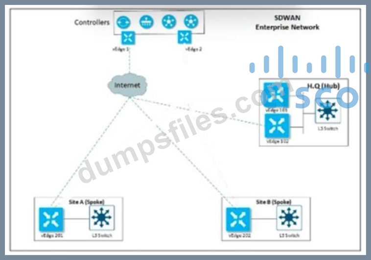- Q222. Refer to the exhibit (Exhibit) Refer to the exhibit Cisco SD-WAN is deployed with controll...