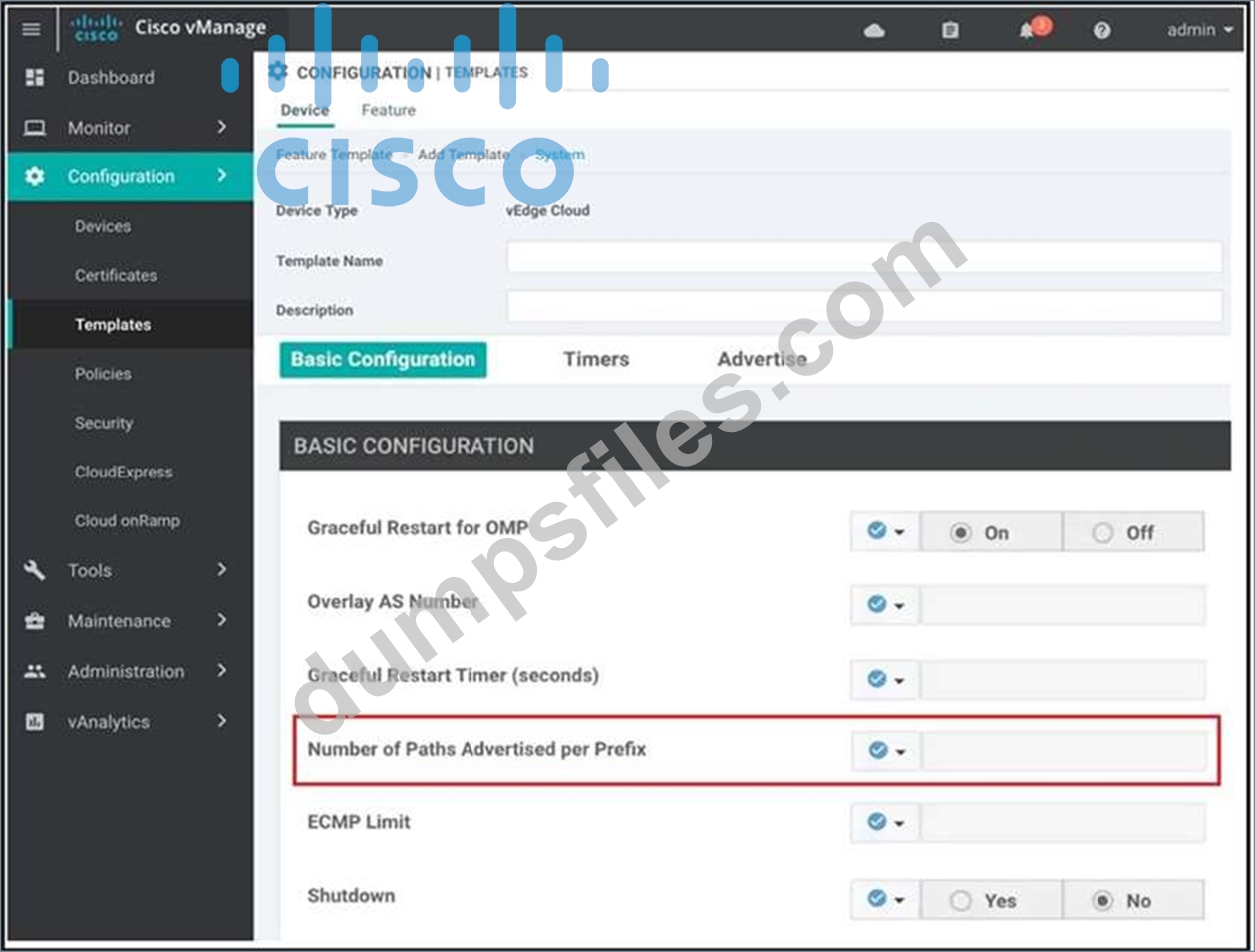 - Q10. A network administrator is creating an OMP feature template from the vManage GUI to be app...