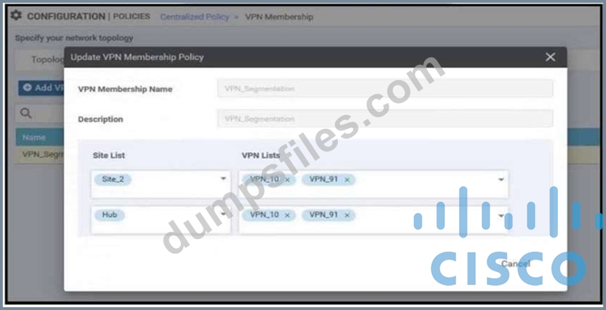 - Q272. When the VPN membership policy is being controlled at the vSmart controller, which policy ...