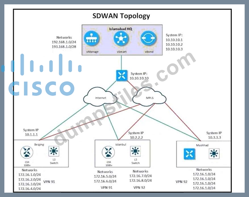 - Q222. Refer to the exhibit (Exhibit) Refer to the exhibit Cisco SD-WAN is deployed with controll...