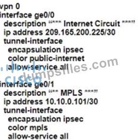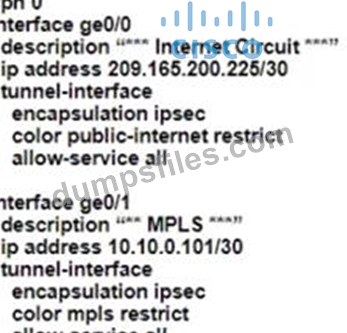 - Q45. Refer to the exhibit. (Exhibit) The tunnel interface configuration on both WAN Edge router...
