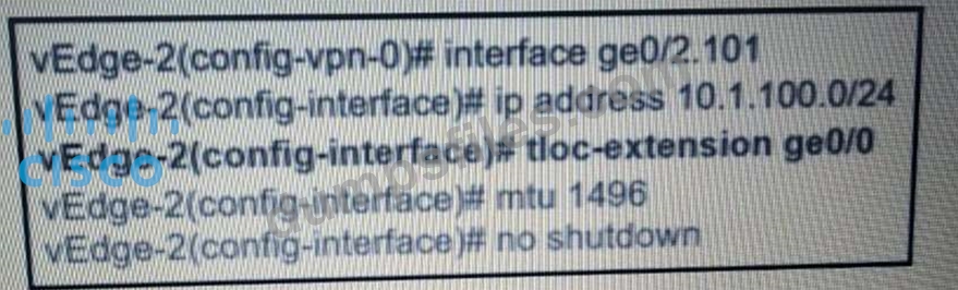 - Q242. Refer to the exhibit. (Exhibit) Which command-line configuration on a WAN Edge device achi...