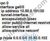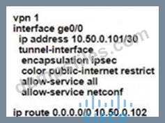 - Q234. Refer to the exhibit. (Exhibit) The Cisco SD-WAN network is configured with a default full...