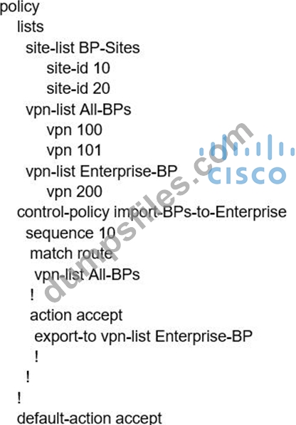 - Q224. Refer to the exhibit. (Exhibit) The Cisco SD-WAN network is configured with a default full...
