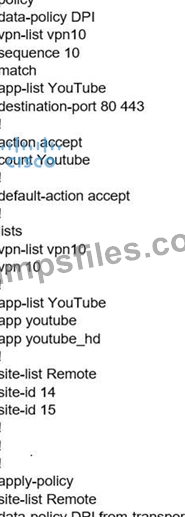 - Q295. An engineer creates this data policy for DIA for VPN 10: (Exhibit) Which policy sequence e...