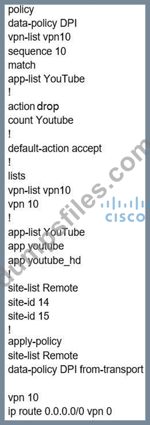 - Q224. Refer to the exhibit. (Exhibit) The Cisco SD-WAN network is configured with a default full...