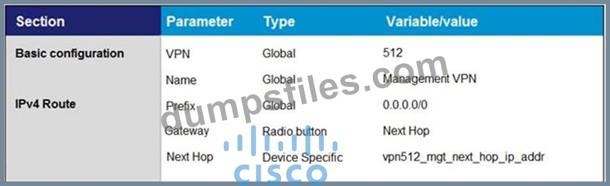 - Q246. Which template configures the out-of-band management VPN? A) (Exhibit) B) (Exhibit) C) (Ex...