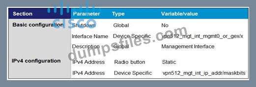 - Q53. Which template configures the out-of-band management VPN? A) (Exhibit) B) (Exhibit) C) (Ex...