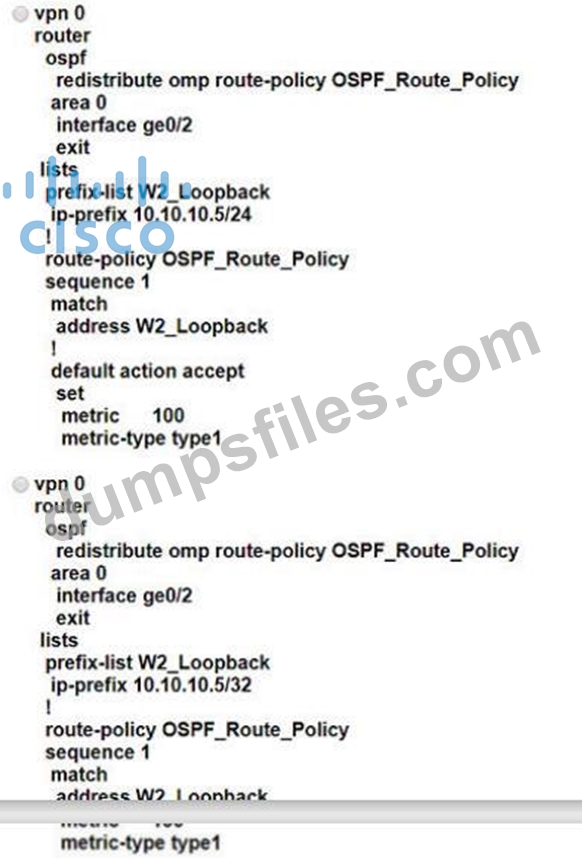 - Q51. An engineer is configuring a centralized policy to influence network route advertisement. ...