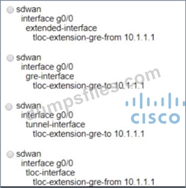 A network administrator is configuring a tunnel interface on a branch Cisco IOS XE router to run TLOC extensions. Which configuration will extend a TLOC over a GRE tunnel to another router in the branch?