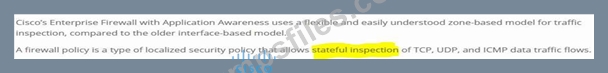A network administrator is configuring an application-aware firewall between inside zones to an outside zone on a WAN edge router using vManage GUI. What kind of Inspection is performed when the ''inspect'' action is used?