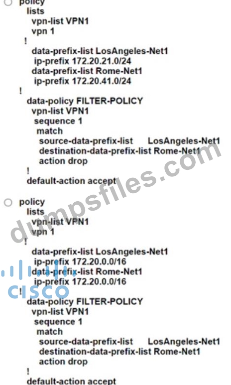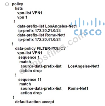 - Q37. An engineer is configuring a centralized policy to influence network route advertisement. ...
