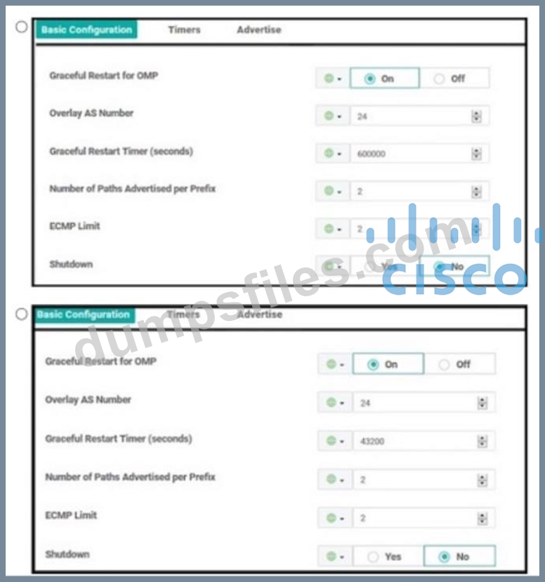 - Q314. A network administrator is creating an OMP feature template from the vManage GUI to be app...