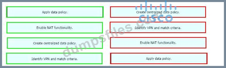 - Q32. Drag and drop the vManage policy configuration procedures from the left onto the correct d...