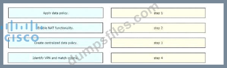 - Q312. Drag and drop the vManage policy configuration procedures from the left onto the correct d...