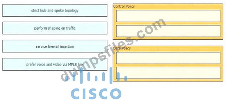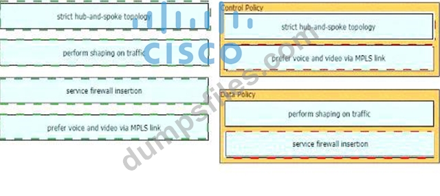 - Q32. Drag and drop the vManage policy configuration procedures from the left onto the correct d...