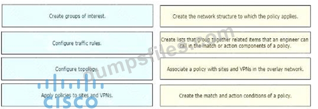 - Q32. Drag and drop the vManage policy configuration procedures from the left onto the correct d...