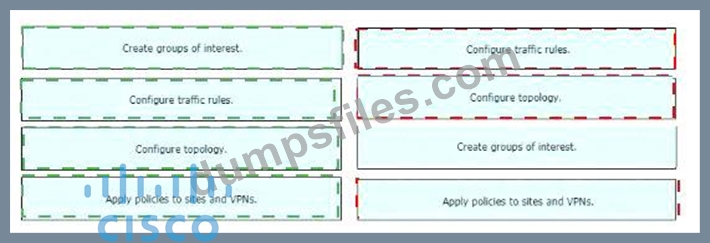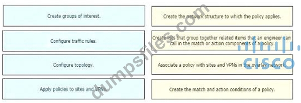 - Q32. Drag and drop the vManage policy configuration procedures from the left onto the correct d...