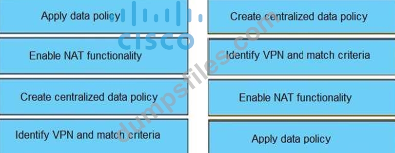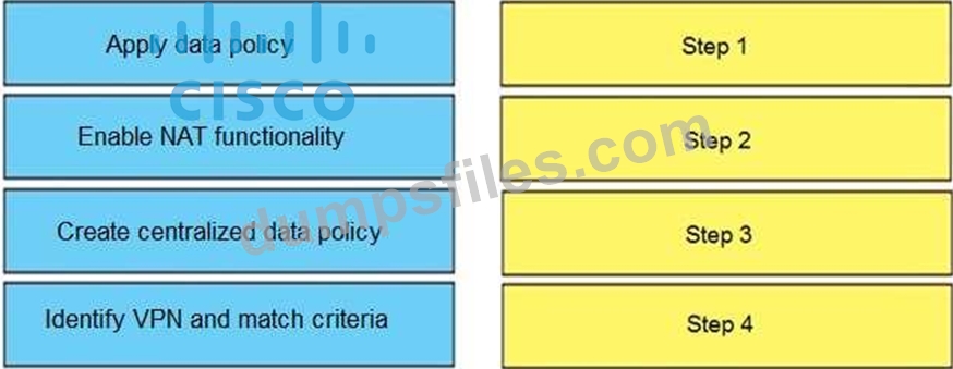 - Q32. Drag and drop the vManage policy configuration procedures from the left onto the correct d...