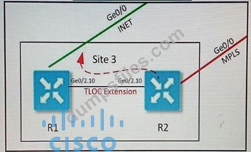 - Q49. Refer to the exhibit. (Exhibit) Which configuration extends the INET interface on R1 to be...