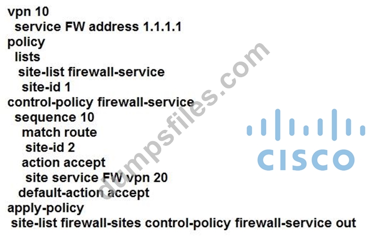 - Q21. An engineer must configure a centralized policy on a site in which all HTTP traffic should...