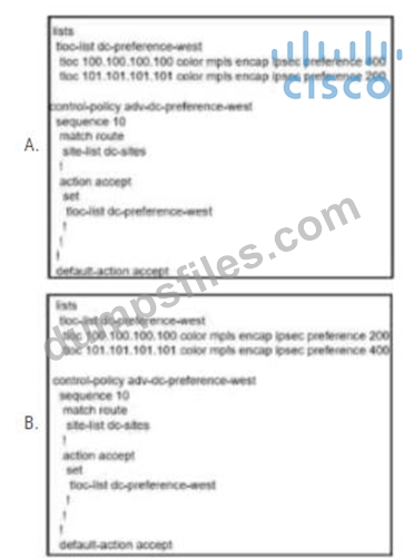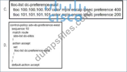 - Q51. An engineer is configuring a centralized policy to influence network route advertisement. ...