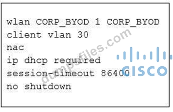 A network engineer must configure a WLAN on a Cisco IOS-XE controller to support corporate devices (using VLAN 30) and BYOD (using VLAN 40) on the same secure SSID. The security team has built an ISE deployment to be used for VLAN assignment and to restrict access based on policy and posture compliance.
