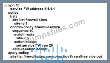 - Q21. An engineer must configure a centralized policy on a site in which all HTTP traffic should...