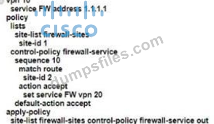 - Q21. An engineer must configure a centralized policy on a site in which all HTTP traffic should...