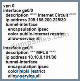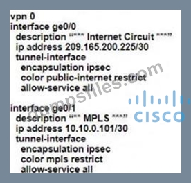 - Q340. Refer to the exhibit. (Exhibit) The tunnel interface configuration on both WAN Edge router...