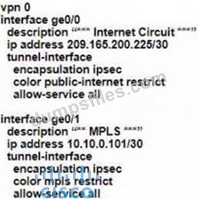 - Q340. Refer to the exhibit. (Exhibit) The tunnel interface configuration on both WAN Edge router...