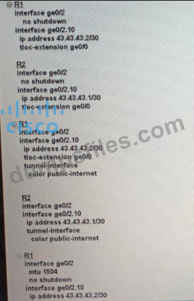 - Q44. Refer to the exhibit. (Exhibit) Which configuration change is needed to configure the tloc...